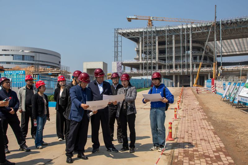 5月11日,学校党委书记吴强明,校长郝芳院士,副校长张玲玲,党委副书记万云波,副校长周鹏,党委副书记马国顺,党委常委赵放辉、蒋文春,校长助理于连栋、王效美一行调研古镇口校区建设进展情况。