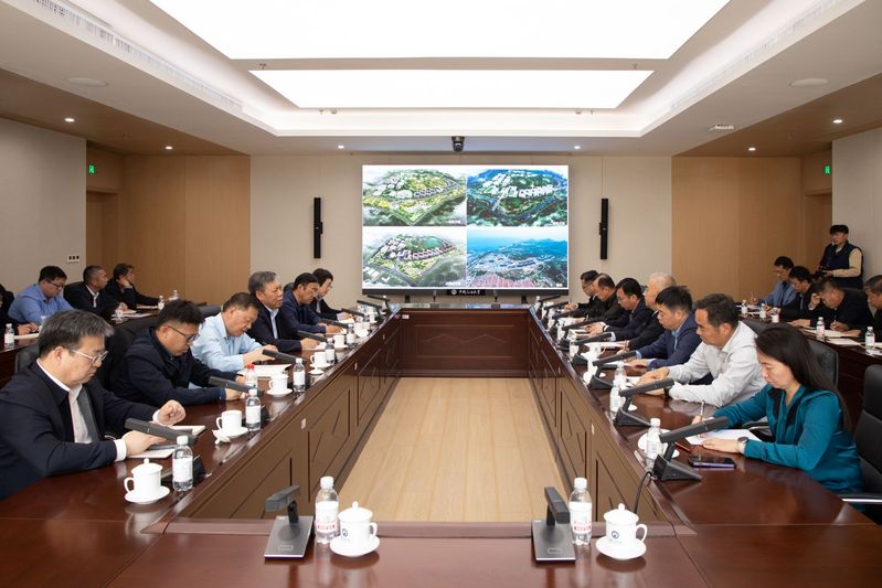 基建处相关负责人汇报古镇口校区团山及高峪南河周边生态修复工程设计方案,与会人员就方案进行深入讨论,并提出改进意见。