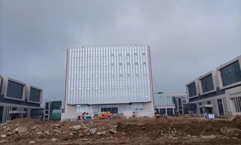 | 2 | 幕墙 | 北侧:玻璃安装完成,陶板柱安装完成,陶板柱金属装饰安装完成,开启扇安装完成,铝板安装完成; 东侧:玻璃安装完成,陶板柱安装完成。陶板柱金属装饰安装完成,开启扇安装完成,角部铝板造型安装完成; 南侧:玻璃安装完成,陶板柱安装完成。陶板柱金属装饰安装完成,开启扇安装完成,铝板安装完成;剩余拉链口处玻璃安装完成90%,陶板柱未安装; 西侧:玻璃安装完成,陶板柱安装完成,陶板柱金属装饰安装完成,开启扇安装完成; 机房层:玻璃安装完成,真石漆完成; 中庭保温:真石漆施工完成,穿孔铝板安装中; 负一层:玻璃安装完成,风雨廊吊顶完成。整体完成96%。 | ||