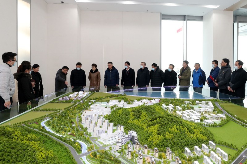 古镇口校区综合办公室主任、党支部书记刘涛带领大家参观了古镇口校区沙盘和西区建设现场,并结合古镇口校区的发展定位以及地理区位,详细介绍了古镇口校区的建设背景、总体规划、战略布局与工程进度等,回顾了校区的建设和发展历程,强调了校区在古镇口核心区大学城“开建最晚、建设最快、入驻最早”的示范引领效应。目前,古镇口校区东区已完成了学校相关教学院部及科研机构入驻计划,实现了以科研、研究生培养和重大平台建设为主的功能布局,入驻师生近2700人。
