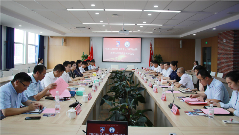 校长助理王效美与海军中学政委黄毅代表双方学校签署合作协议。教务处处长侯影飞代表学校授予海军中学“中国石油大学(华东)实践教学基地”牌匾。经济管理学院副教授刘笑为海军中学师生作专题讲座。
